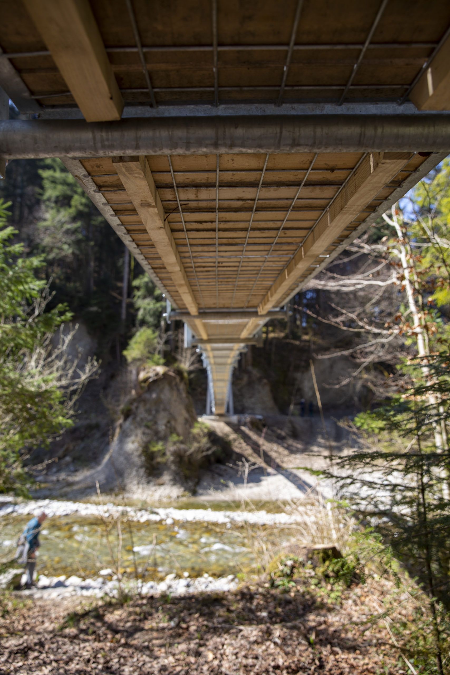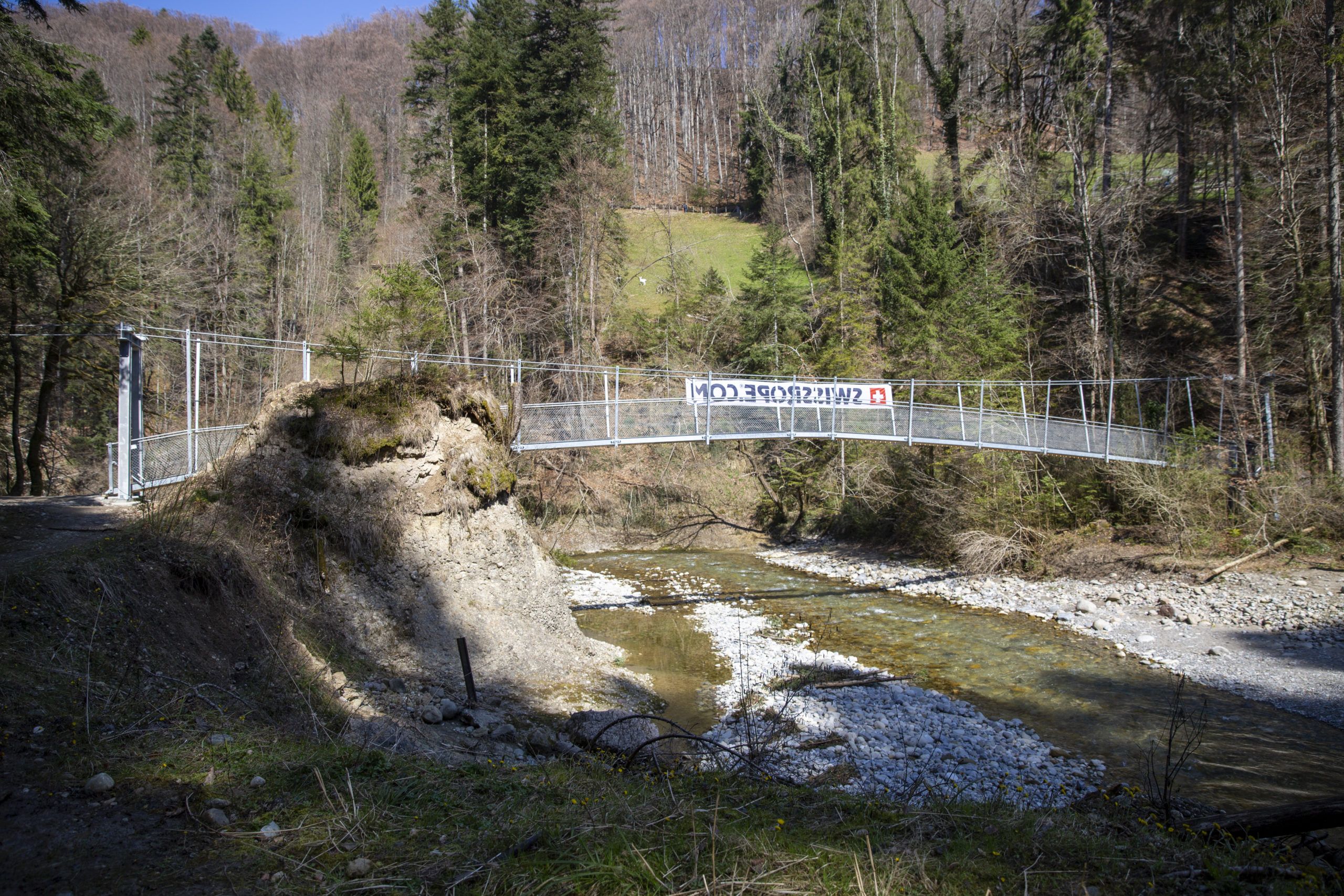 Der Waggelisteg wurde nun durch eine Hängebrücke mit einer Länge von 42 Meter ersetzt. Sowohl die Lage wie auch die Höhe des neuen Stegs wurden so gewählt, dass die Verankerung dauerhaft und der Steg vor Hochwasser geschützt ist. Wir stellen mit grosser Freude fest, dass auch der neue „Waggelisteg“ seinem Namen gerecht wird. Zumal die beiden Enden des Stegs nicht fest verschraubt sind, „waggelet“ auch die neue Brückenkonstruktion beim Gang über die Zulg.