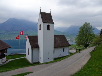 Das nächste Zwischenziel ist die Kapelle St. Jost, welche hoch über Ennetbürgen liegt und eine bekannte Hochzeitslocation ist. Welch ungeplanter Zufall 🙂 Heute ist unser Hochzeitstag. Wir nehmen uns Zeit für ein paar Fotos und machen uns auf den Abstieg nach Ennetbürgen, wo wir diverse tolle Häuser am Hang und am Seebecken betrachten. Wir sind uns nicht ganz einige ob es schöner ist am Berg oder mit Seeanstoss zu wohnen… Aber die Geschmäcker sind ja bekanntlich verschieden. Zurück am TCS Camping geniessen wir gemeinsam ein tolles Apéro und Nachtessen und schmieden noch Pläne für diesen Sommer…