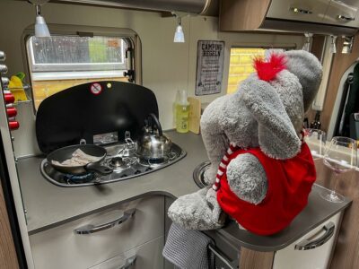 Zurück beim Wohnmobil stellten wir unsere Stühle nach draussen und genossen die Sonne in vollen Zügen. Während die Natur langsam zur Ruhe kam, wurde gestrickt und einfach entspannt – genau so, wie ein solches Wochenende sein soll.