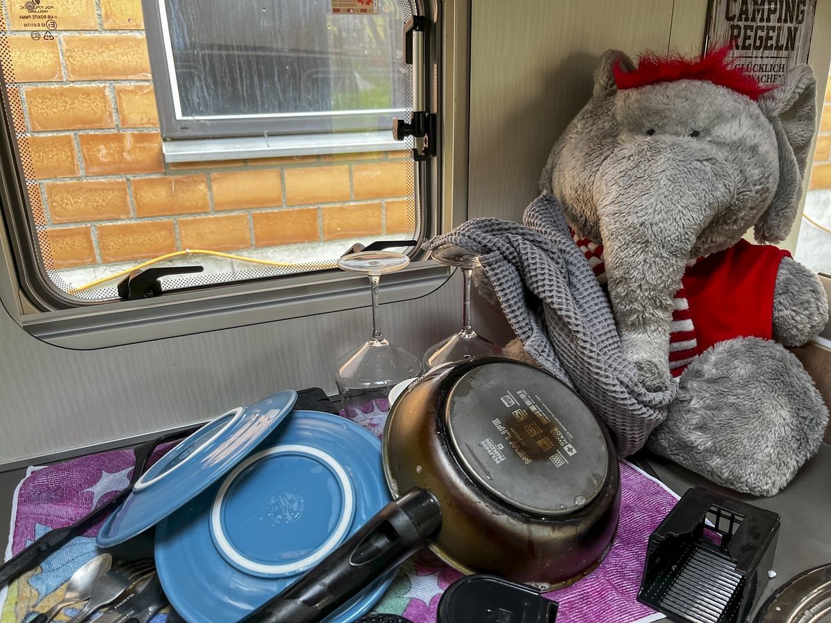 Zurück beim Wohnmobil stellten wir unsere Stühle nach draussen und genossen die Sonne in vollen Zügen. Während die Natur langsam zur Ruhe kam, wurde gestrickt und einfach entspannt – genau so, wie ein solches Wochenende sein soll.